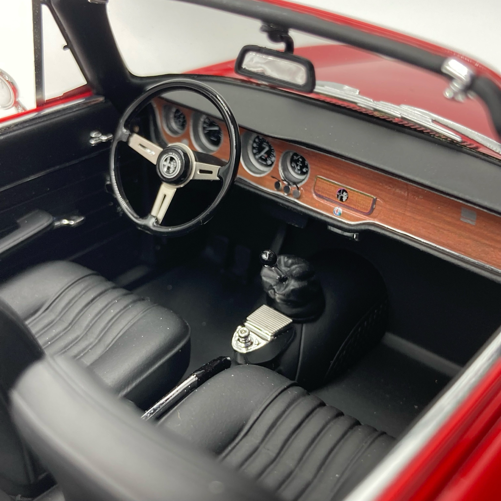 L’élégance rare de l’Alfa Romeo Giulia 1600 GTC de 1964 L’Alfa Romeo Giulia 1600 GTC est l’une des déclinaisons les plus rares et les plus élégantes de la lignée Giulia. Lancée en 1964, cette version cabriolet a été carrossée par la célèbre maison Touring Superleggera. Basée sur le coupé Sprint GT, la GTC (Gran Turismo Cabriolet) offrait le plaisir de rouler cheveux au vent tout en conservant les quatre places et les performances dynamiques du moteur double arbre à cames de 1.6L. Cette reproduction au 1/18 par Mitica (référence MITICA100080) rend hommage à ce chef-d’œuvre italien dans son emblématique livrée Rosso Alfa. Le soin apporté par Mitica à cette miniature est remarquable. Chaque courbe de la carrosserie Touring a été fidèlement restituée, capturant la finesse des lignes qui caractérisent cette automobile d’exception. En version Open Top (capote ouverte), ce modèle permet d’admirer sans obstacle l’habitacle raffiné, les sièges finement sculptés et le tableau de bord fidèle à l’instrumentation de l’époque. Les détails chromés, de la calandre aux poignées de portes, apportent une touche de réalisme saisissante qui ravira les collectionneurs les plus pointilleux.