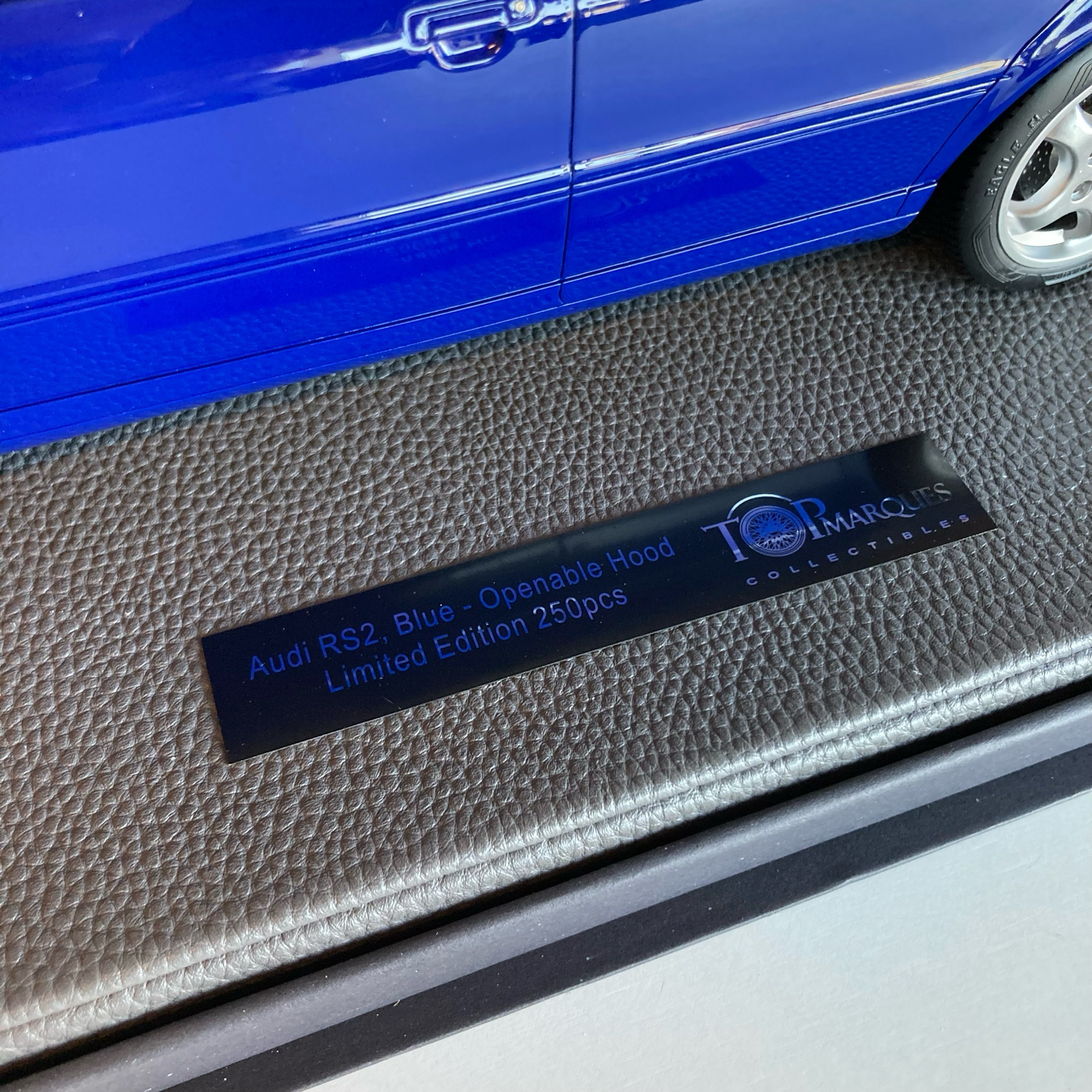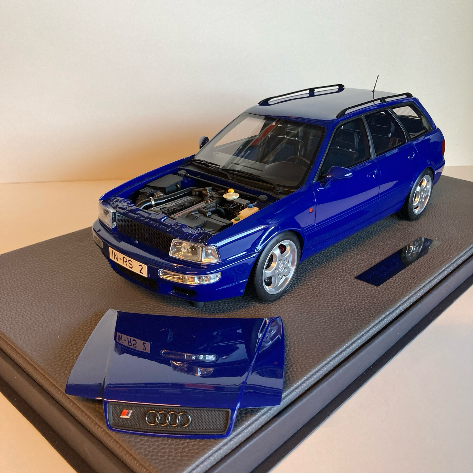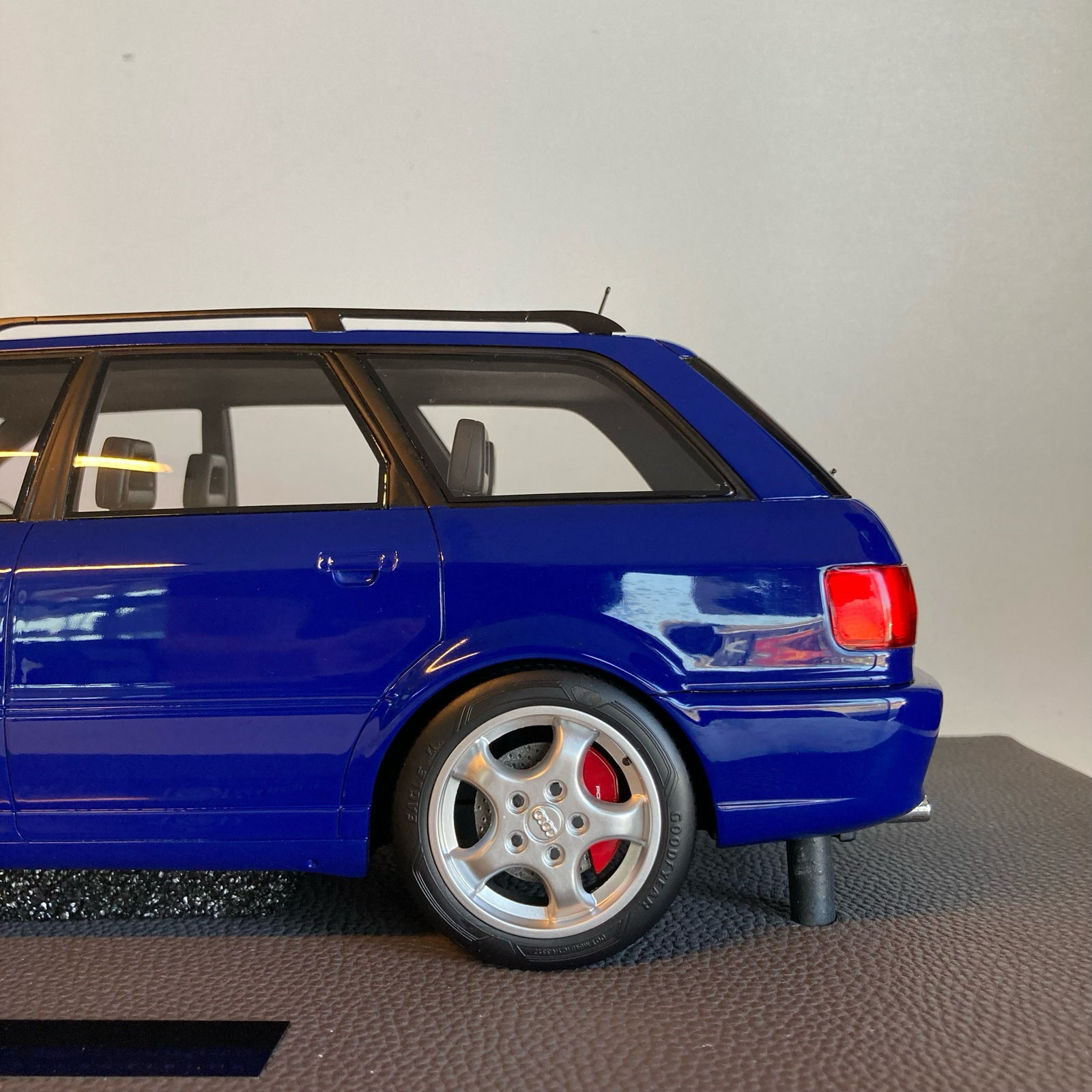 Présentée ici dans la mythique teinte Nogaro Blue, couleur emblématique du modèle, cette reproduction capture toute l’essence de la RS2 originale : carrosserie Avant musclée, jantes spécifiques inspirées de Porsche, rétroviseurs distinctifs et détails fidèlement reproduits. À l’échelle 1/12, le niveau de finition est spectaculaire : intérieur détaillé, sellerie réaliste, tableau de bord précis et éléments extérieurs parfaitement proportionnés.