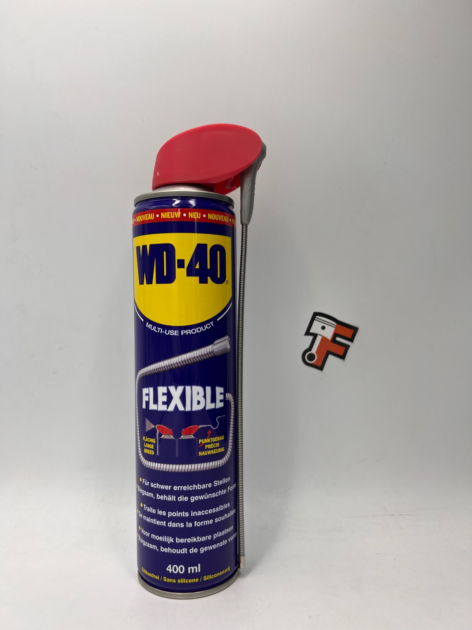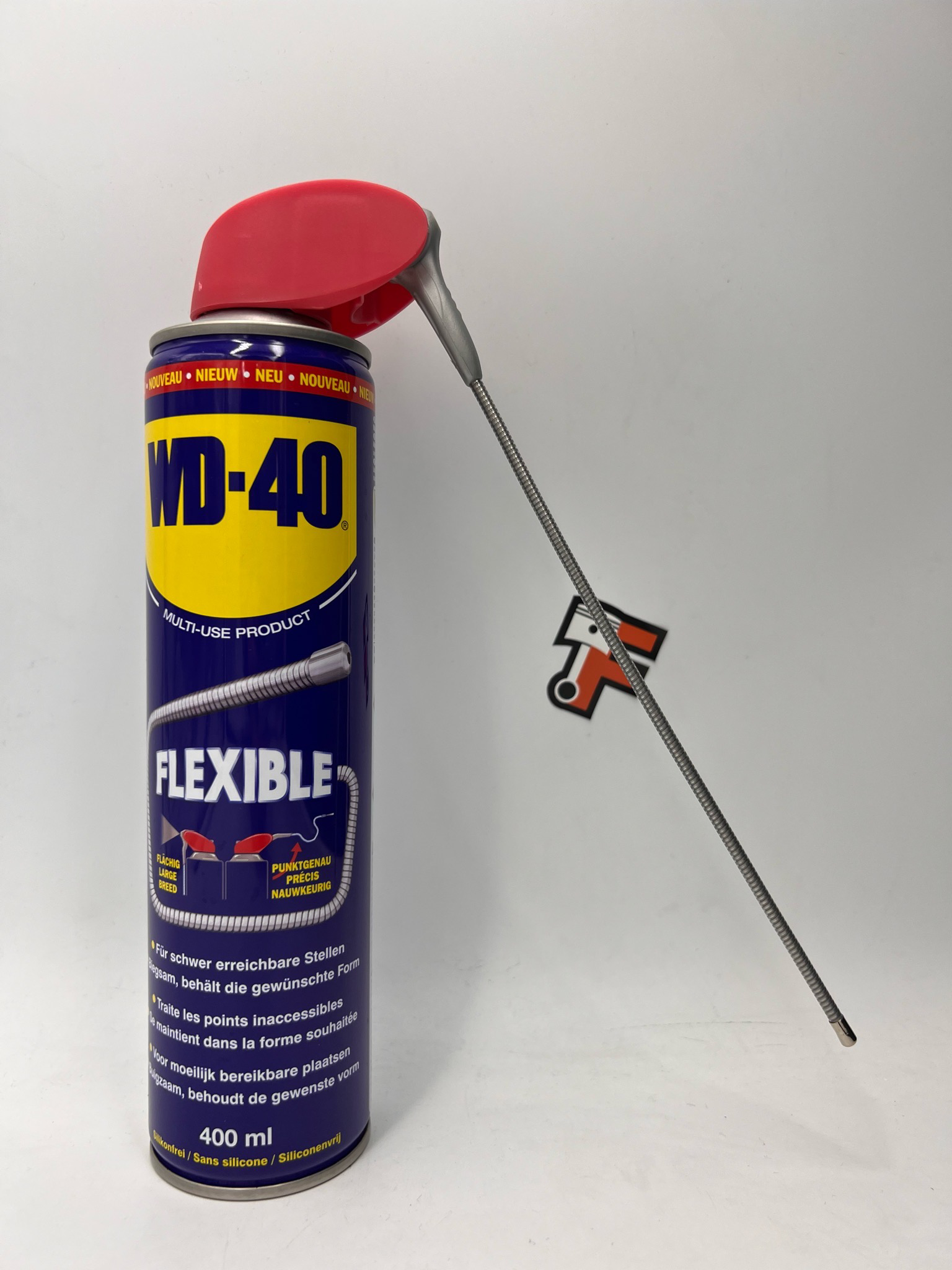 Spray dégrippant, nettoyant, lubrifiant multifonctions avec buse et tuyau flexible pour accéder aux endroits difficiles. Sans silicone. Contenance 400ml